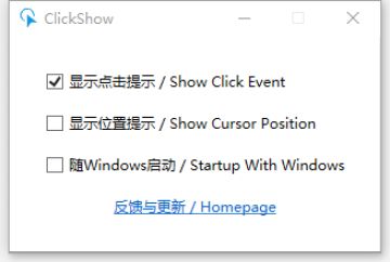 ClickShow是一款非常好用的鼠标加强工具,提示鼠标点击、鼠标位置、记录鼠标操作,让鼠标自动完成一些简单但是需要重复的操作,解放你的双手和时间,有需要的用户欢迎下载使用!