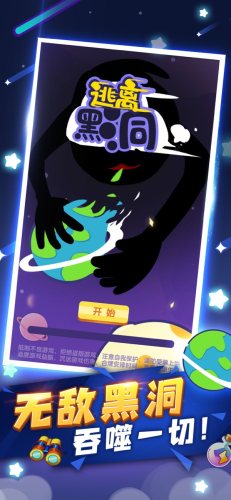 逃离黑洞红包版,一款令人上瘾的小游戏,操控一个能吞噬万物的黑洞!不知道从什么时候开始,宇宙中生成了这个黑洞,为了不让自己消失,你需要控制它吞噬周围各种星球!