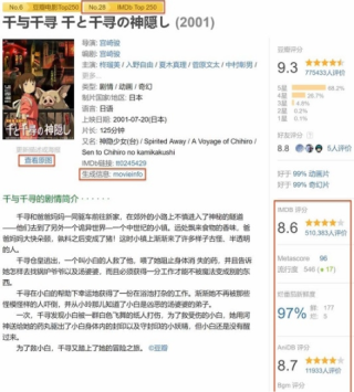 聚合数百家资源网站,通过右侧边栏1秒告诉你哪些网站能下载豆瓣页面上的电影|电视剧|纪录片|综艺|动画|音乐|图书等,有资源的网站显示绿色,没资源的网站显示黄色,就这么直观!所有豆瓣条目均提供在线播放|阅读、字幕|歌词下载及PT|NZB|BT|磁力|百度盘|115网盘等下载链接,加入官网打死也不出的豆列搜索功能,此外还能给豆瓣条目额外添加IMDB评分|IMDB TOP 250|Metascore评分|烂番茄评分|AniDB评分|Bgm评分|MAL|亚马逊评分等更多评分形式。