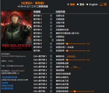 红至日2幸存者二十二项修改器是为喜欢该游戏的玩家准备的游戏辅助工具,支持无限生命、能量、子弹、无CD、无限物品等多项功能,让你的游戏之旅更加轻松,感兴趣的玩家欢迎下载使用!