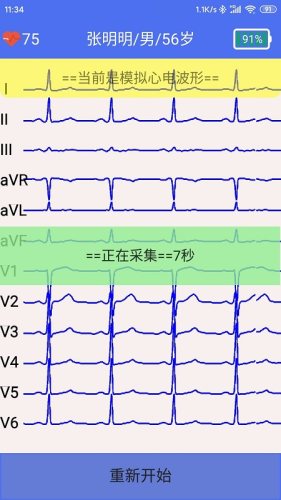 应用在非第三方调用的情况下,点击演示按钮,可在不连接设备的情况下进行模拟心电采集演示。