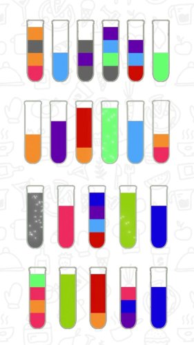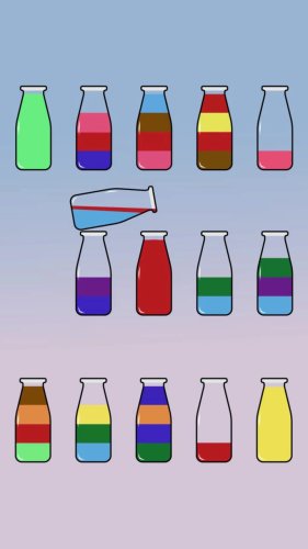 超级拼一拼,一款五光十色小瓶子排序的游戏,非常的清新,非常的讲究头脑,你要按照目标顺序来将小瓶子投入不同的颜色液体,有着汉诺塔式的玩法,快来试试吧。