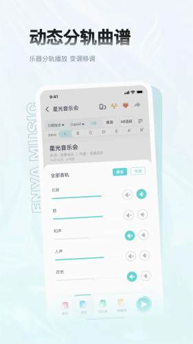 恩雅音乐App是恩雅创新科技开发的一款全能音乐应用 ;它以人工智能AI和MIDI处理技术为核心打造出“超级曲谱”和”超级文本谱“ 。