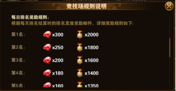 竞技场属于游戏中比较重要的玩法了,钻石奖励也是少不了的。4000名内刷新历史排名可获得大量钻石奖励,而且每天在1000名内还能获得当天的排名奖励,其中也就包含了钻石!每天第一名能获得300钻石!还等什么,赶紧挑战对手吧!