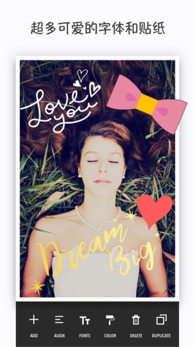 添加文字到照片或者视频上,变换不同的背景,一张吸引眼球的照片就这么诞生了~