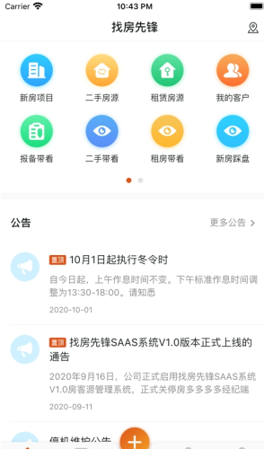 找房先锋app是一款综合房产服务软件平台,工作人员可以通过找房先锋app查询或者录入客户的信息,也可以随时查看房产资讯和公告,提高自己的效率。