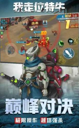 moba轻竞技游戏,通过英雄角色的技能释放和走位表现,在兵线的运营下推倒敌方的基地。在这个废土世界从来都是实力为王,只有手握中装火力拥有强大实力的人才能生存下去,操作要溜,走位要帅,来一场惊心动魄的冒险之旅吧。