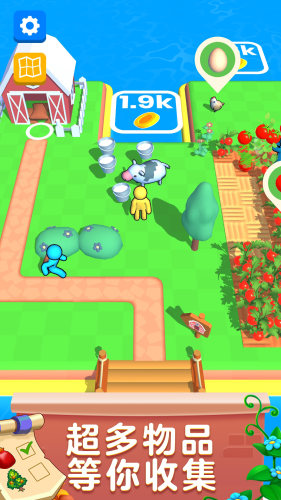 我的疯狂农场,一款画风清新的农场经营建设游戏。游戏中玩家召集超多小人帮你建设农场,各种浇灌植物、挤奶、摇树、剪羊毛等操作等你完成,轻松打造你的温馨农场。