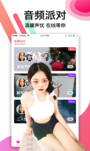 不卡、不掉、不延时,24小时稳定连麦。 声音、颜值、灵魂匹配, 陌生人快速匹配,总能找到你喜欢的灵魂。