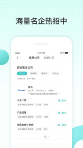 直聘高薪版,致力于为各业人才提供更优质的高薪工作,更便捷的求职渠道,以及更畅快的求职体验,实现企业岗位需求与人才的精准匹配。随时随地,想聊就聊,线上邀约,谈好再面试,不等待,入职快。