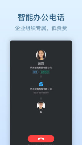 【办公电话】:企业组织专属电话,公务私事分开打,外部来电不漏接,随身携带的办公电话,员工免费拨打,新增拨号盘功能;