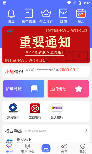 小旭积分天下App,帮助用户将自己手中的信用卡积分兑换成现金,各大银行信用卡统统支持,避免用户浪费自己的积分,积少成多换成现金不错哦!