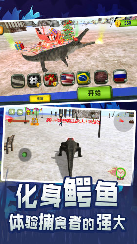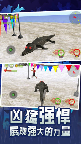 非常好玩的鳄鱼模拟狩猎手游,3D真实的画面,玩家将在游戏里扮演一只鳄鱼,攻击你的目标,不要让他们离开,捕捉人类,鱼类和丛林动物。