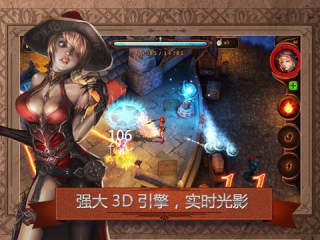 1、震撼的3D画面,采用次世代游戏引擎,拥有真实又充满玄幻色彩的光影效果、绚丽的魔法特效和粒子