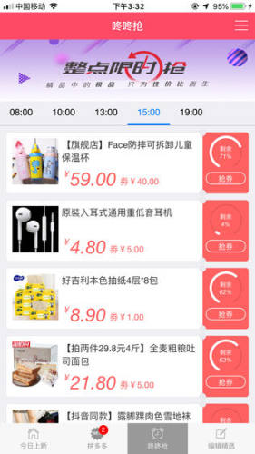 【咚咚抢】每天整点直播淘宝天猫优惠券精品中的白菜价抢,只为性价比而生。