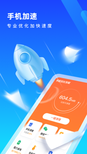 手机优化专家app是一款手机优化加速软件,用户可以通过手机优化专家app将手机中的垃圾文件清理删除,节约手机的内存空间,提高手机的运行效率。