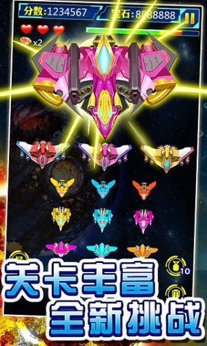 雷霆X战机2是一款非常火爆的飞行射击游戏,驾驶全新的雷霆战机,搭载强力的武器装备在星空中与敌人作战,还有无尽的挑战模式容让您疯狂开会根本停不下来,还有更非常的武器和战机等你来打造。