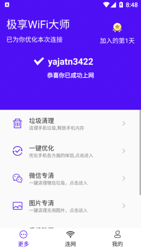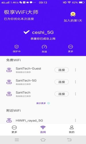 极享WiFi大师app是一款手机wifi连接管理工具,用户可以通过极享WiFi大师app对连接的wifi进行优化管理,app提供网络优化,网络检测等功能。