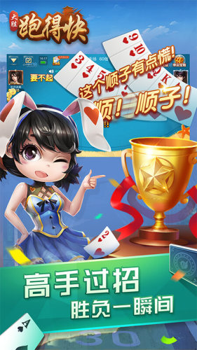 大胜跑得快是安卓手机端的跑得快游戏,玩法如其名字,就是要最快速度的将牌全部出出去。核心思路就是有牌必出,丰富特效和模式,原汁原味新体验,加入简单有趣的跑得快游戏中来。
