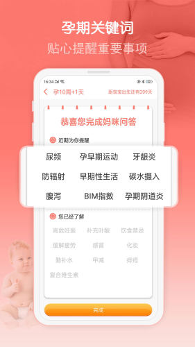 妈咪孕育宝app,怀孕知识,专业全面为你解惑;妈咪问答,帮你筛选孕期问题;孕期关键词,贴心提醒重要事项;孕期总览,40周全过程一目了然;近期提醒,让你的孕期更省心。