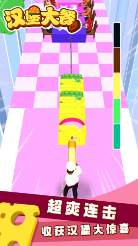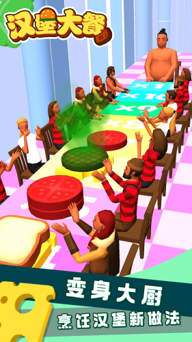 汉堡大餐,一款休闲跑酷闯关游戏。游戏中玩家将化身厨师,为你的顾客送上美味的汉堡大餐,沿途超多障碍物等你躲避,注意不要掉落汉堡,赚取丰厚金币来解锁新的皮肤吧。