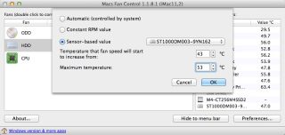 相对于一温度传感器控制风扇速度(例如,第三方HDD)的