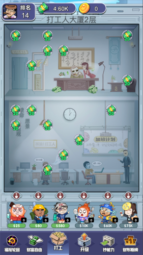 5、通过不断雇佣打工人,收集美元提升你的钞能力,冲刺排行榜财富排名!现实中成功那么难,但是游戏中,你可以轻轻松松走上人生巅峰!