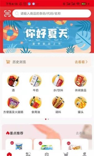 新货多是一款专业的连锁便利店进货采购服务软件,使用方法简单,在这里输入商品的条码、代码和名称即可精准搜索,实时记录历史浏览内容,拥有的商品类型多,进行了不同标签划分,实时选择进货补充库存,即可安装使用。