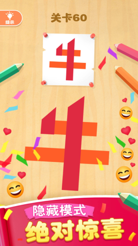 2、闯关过程中自带提示功能不过次数有限,在关键时候使用能够给你正确的解题思路;
