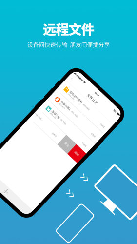 【远程文件】远程文件是用于异地文件存取,您可以跨系统跨设备上传或下载远端手机文件,在远程桌面使用移动文件和文件夹,轻松删除不需要的文件,上传下载 TCP/IP 双向传输文件无拥塞、无乱序丢包,支持断点续传。