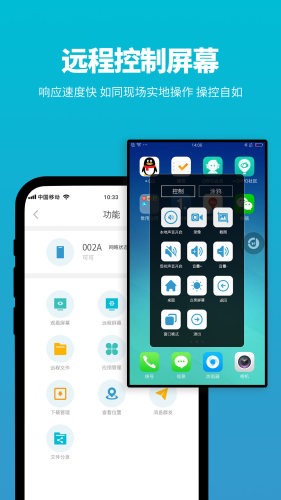 专注免 root 实现手机远程控制手机、手机远程控制电脑,在任何连接网络的地点,轻松远程控制屏幕、屏幕墙、远程上传下载文件、远程观看摄像头、远程查看手机定位等远程功能,拒绝卡顿!为你提供高达每秒45帧的流畅远程控制体验,远程控制就是这么轻松!