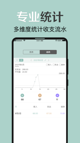 每日开销明细一清二楚,账单就是这么简单、清楚、明了。