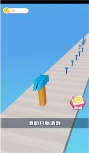 3、通过跟随节奏来完成一个个的闯关,不断的前进来将更多的钉子钉在木板上来获取分数。