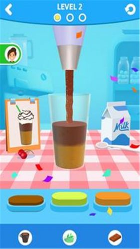 奶昔梦工厂是一款简单的奶昔制作模拟游戏。奶昔梦工厂游戏里有众多的奶昔材料,玩家可以制作美味的食物,还有大量的奶昔装饰品来设计你自己的奶昔。