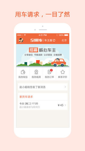 51用车司机端是由51用车官网专为广大的一个人开车的上班族打造的。使用51用车司机端,可以实时查看用车请求,配合地图显示,让您可以轻松接单。成为51用车核心车主,可以分享你的多余座位、实现节能减排、认识更多的朋友,一起分摊油费,快乐出行。