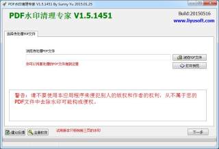 PDF水印清理专家是一款专业的去水印工具,它可以帮助你快速去除水印,不管是文字水印还是图片水印它都能帮你一键去除,而且还不会对原图片文件造成任何影响,既小巧便捷同时又功能强大,需要的朋友们快来下载体验吧!