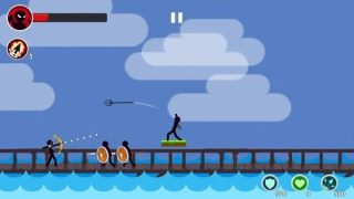 2、游戏画风非常简约,只有几个小平台和火柴人,敌人都在和你形成了不同的高低差。