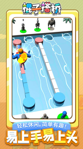 棍子搭桥这款小游戏,有着满满的休闲元素,玩家们带领橡皮人在水面上竞争,人数优势就会获得胜利,就要看你能否掌握大局了。