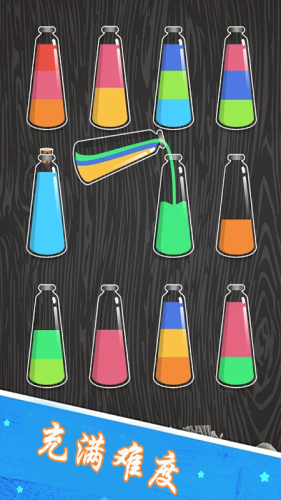 这款非常有挑战性的益智闯关倒水小游戏,规则简单一看就会,按照规则去完成倒水任务,将相同颜色倒在同个瓶子里,颜色一致才能顺利通关。看上去游戏好像没什么难度,但实际上非常考验你的耐心和眼力,包括逻辑思考能力!