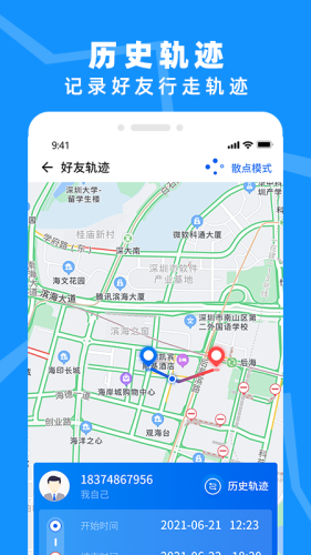 实时查看轨迹位置守护好友安全,与好友分享位置;