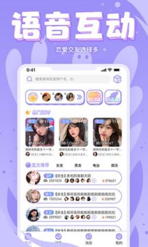 1、一款专为喜欢用声音进行交友的大型互动社交平台,在这款语音交友软件中用户可以选择自己喜欢的声音来进行连麦互动。