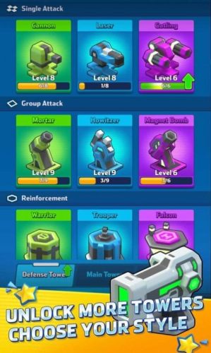 2、游戏玩起来一点也不单调,这里有着不同的模式可以进行选择,快来不断的升级你的防御塔完成战斗吧。