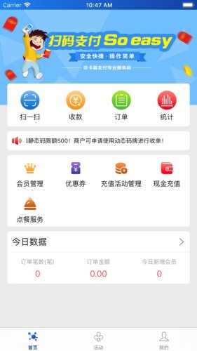 2. 完成支付更便捷。微信、支付宝扫码付款使用一个二维码即可,客户不用切换APP。
