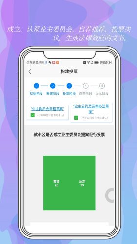 成立、认领业主委员会的线上流程,其他重大决议的发起及参与,自荐推荐、选举投票、决策决议;