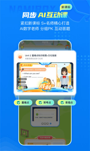 纳米盒app,小学英语、初中英语课程免费学,支持人教版、译林版等多种版本教材,大量同步课程、培优课程、拓展课程随你挑选,在家轻松学知识,智能点读,轻松学习,让小学生在线学习课本知识。