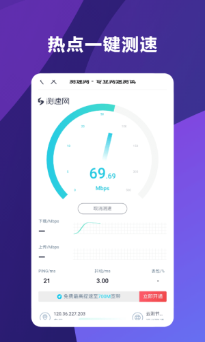 超能WiFi助手是一款非常实用的网络管理服务软件,软件功能非常强大,这里提供免费连接、网络检测、内存优化、网络加速等多种功能,操作方便,能够让你实时了解网络状况,上网更安全便捷!