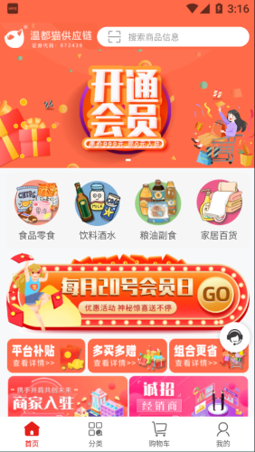 温都猫供应链APP是温州温都猫股份有限公司旗下移动电商应用,温都猫供应链APP为用户提供各类商品采购、分销、物流查询、会员入驻、订单管理等功能。