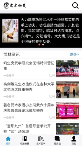 武术秘笈App,是由长沙睿岩科技有限公司开发的移动的武术藏经阁,提供了武林资讯、功法秘籍、武术百科、论武堂、养生健身以及场馆机构等。