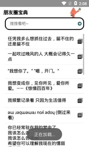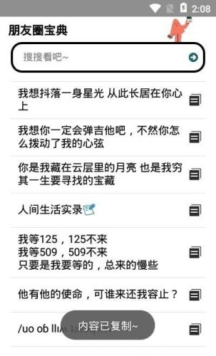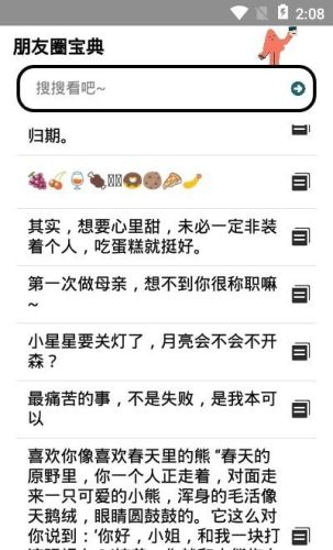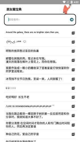 1、朋友圈宝典是一款治愈人心灵的语录软件,让你每一天都有慢慢正能量;