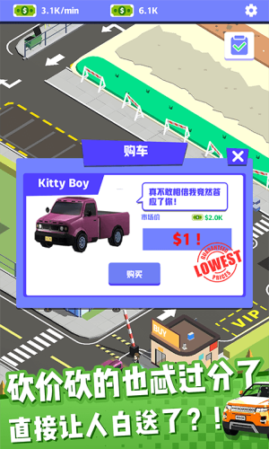一款十分有趣的模拟经营游戏,在游戏中化身为一名合格的二手车销售者并且经营属于自己的二手车市场,在二手车市场之中会有很多的陷阱,作为一名合格的二手车商需要的是帮助每一个购买车子的顾客找到喜欢车子并且让他们心甘情愿的去购买,喜欢就来下载吧!